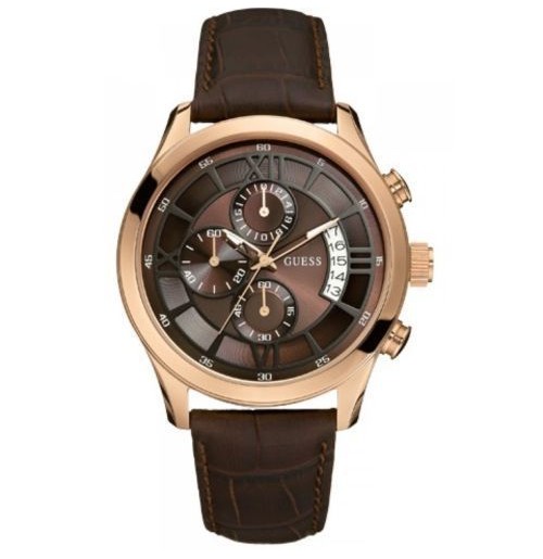 Guess W14052G2 Men's Wrist Watch in Brown Dial Leather Strap Watch