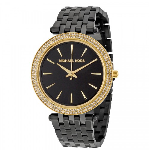 Michael Kors MK3322, Sleek Design, Full black Studded Bezel Watch for Women