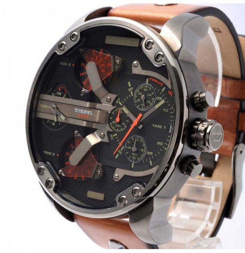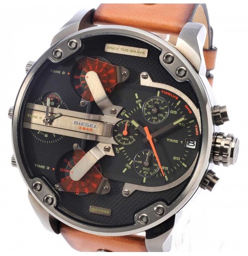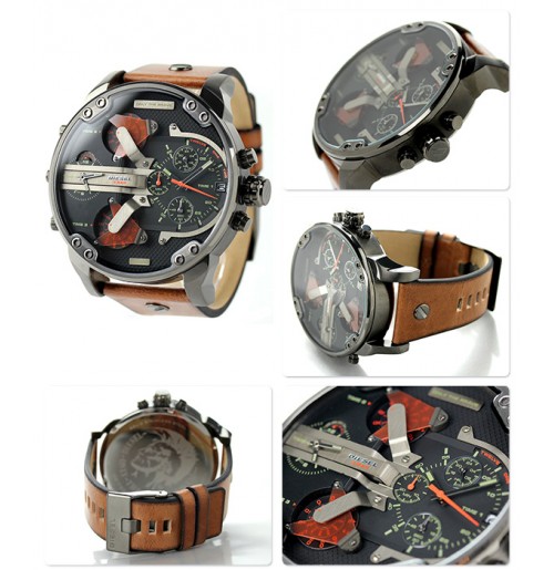 Diesel Men's DZ7332 Mr Daddy 2.0 Stainless Steel Watch With Brown Leather Band