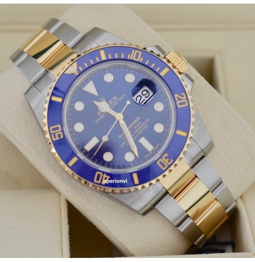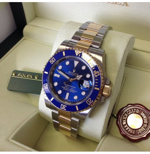 Rolex Submariner Blue Index Dial Oyster Bracelet Two Tone Mens Watch