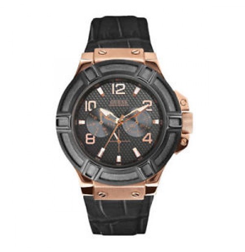Guess black leather strap chronograph W0040G5 mens watch.NEW.BLACK DIAL